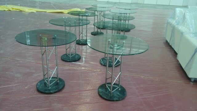 深圳玻璃圓桌出租 簡(jiǎn)易桌出租 展覽折疊椅租賃