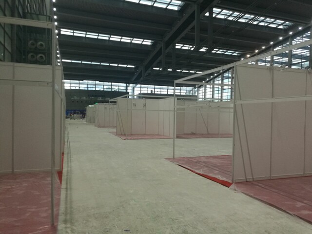 此次展位搭建物料:600米桁架背景  236個(gè)鋁料標(biāo)準(zhǔn)展位 地毯 燈光 舞臺(tái) 桌椅等等。