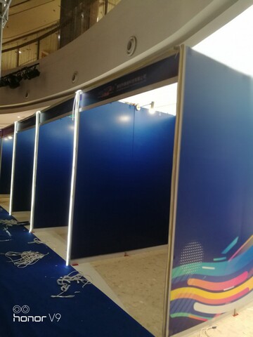 標準展位的特點是:外形美觀整潔,整面貼KT板制作 裝卸快捷,角度變換,易裝易拆,便于運輸,節省存儲空間。標準展位、八棱柱展板適用于畫展,國畫、油畫、攝影展、演員更衣間、場地隔斷、宣傳簽售、攤位、背景、圍擋等多種場合。